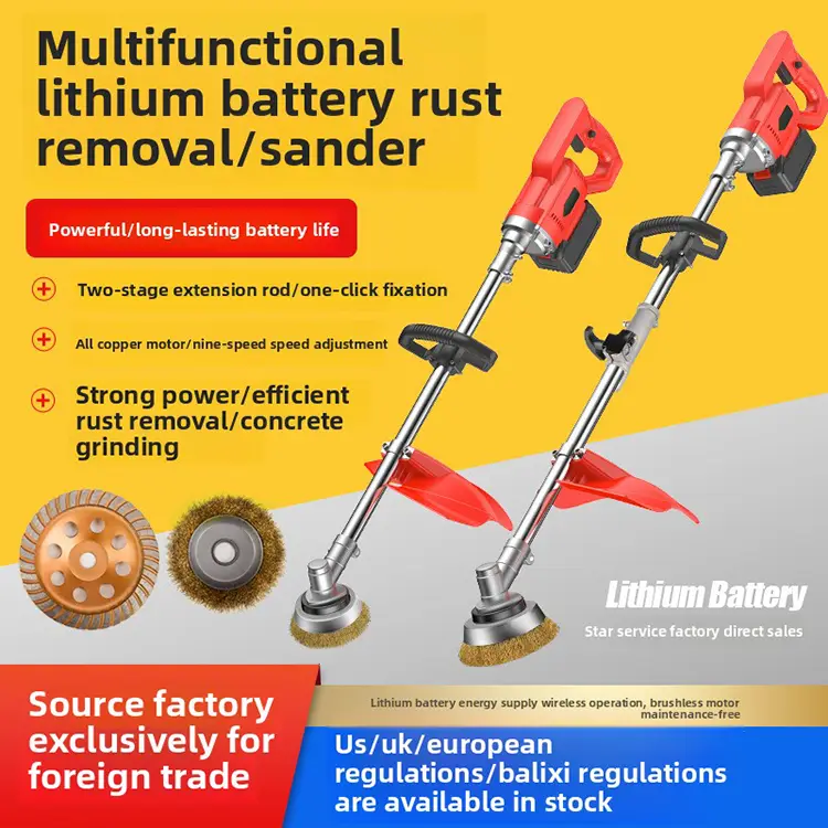 Многофункциональная литиевая ручная батарея для съемки ржавчины, железная пластина, стальная шлифовальная шлифовка теперь сделала 6 основных модернизаций, а именно номелька для литийной батареи с большой способностью №1 является более удобным. NO2, 7-ступенчатая регулирование скорости, чтобы соответствовать различным условиям труда. NO3 модернизированная мощность моторождения медного сердечника. №4, один удлинитель, продлите, расширение напротив быстрого установки. №5 алюминиевый сплав --- Увеличьте материал тела. No6 Уменьшите вес тела ---- легко в эксплуатации.